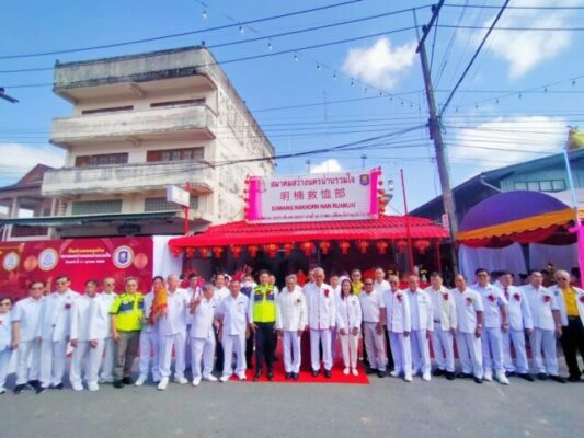 ได้รับเกียรติจาก บายบรรจง ขุนเพชร รองผู้ว่าราชการจังหวัดน่าน เป็นประธานในพิธี การจัดงานในครั้งนี้ เพื่อเป็นเกียรติและเป็นสิริมงคลแก่สมาคมสว่างนครน่านรวมใจ ตลอดจนสาธุชนทั้งหลาย สมาคมสว่างนครน่านรวมใจ ได้ก่อตั้งเมื่อปี พ.ศ. 2564 โดยใช้ชื่อ สมาคมกู้ชีพกู้ภัยนครน่านรวมใจ ได้ดำเนินงานช่วยเหลือผู้ป่วย ผู้ได้รับบาดเจ็บ และผู้ประสบภัย ตลอดจนด้านสาธารณกุศลต่างๆ
