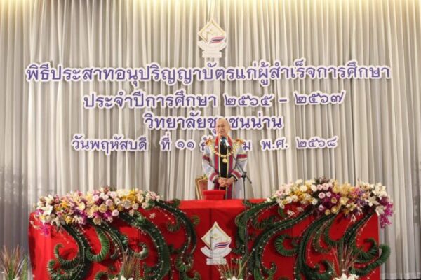 ไฟฟ้า หงสา เข้าร่วมพิธีประสาทอนุปริญญาบัตรแก่ผู้สำเร็จการศึกษา วิทยาลัยชุมชนน่าน ประจำปีการศึกษา 2565 – 2567 ณ ห้องประชุมแกรนด์บอลรูม โรงแรมน่านกรีนเลควิว รีสอร์ท ตำบลไชยสถาน อำเภอเมืองน่าน จังหวัดน่าน