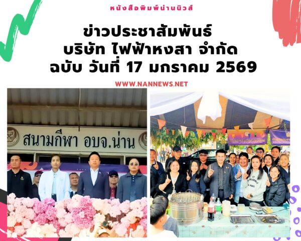 เมื่อวันที่ 6 มกราคม 2569 บริษัท ไฟฟ้า หงสา จำกัด นำโดย นายสรรเพชญ์ ปุละ หัวหน้าสำนักงานน่าน พร้อมด้วยฝ่ายองค์กรสัมพันธ์ สำนักงานน่าน เข้าร่วมกิจกรรม “มัธยมน่านเกมส์” การแข่งขันกรีฑานักเรียน เยาวชน ระดับมัธยมศึกษาจังหวัดน่าน ปีการศึกษา 2568 จัดขึ้นระหว่างวันที่ 6-8 มกราคม 2569 ณ สนามกีฬาองค์การบริหารส่วนจังหวัดน่านได้รับเกียรติจาก นางสาวณัฐยาน์ ทวีวงศ์ รองผู้ว่าราชการจังหวัดน่าน เป็นประธานในพิธีเปิดการแข่งขัน โดยมี นางนัฑวิภรณ์ จันต๊ะพรมมา ผู้อำนวยการสำนักงานเขตพื้นที่การศึกษามัธยมศึกษาน่าน เป็นผู้กล่าวรายงาน โดยการแข่งขันในครั้งนี้ เป็นความร่วมมือระหว่าง