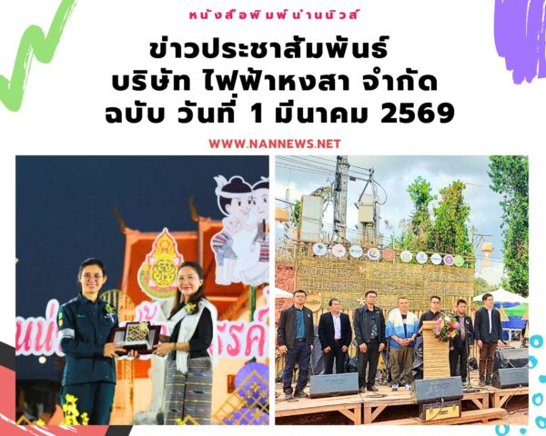 เมื่อวันที่ 24 กุมภาพันธ์ 2569 บริษัท ไฟฟ้า หงสา จำกัด โดย นางสาวกรรณิการ์ ปัญญาทิพย์ เจ้าหน้าที่ฝ่ายองค์กรสัมพันธ์ สำนักงานน่าน เข้าร่วมงาน มหกรรมเปิดโลกงานอาชีพนักเรียนโรงเรียนขยายโอกาสทางการศึกษา จังหวัดน่าน “กาดละอ่อนน่าน สร้างสรรค์ผลงาน สานต่ออาชีพ ปี 4” ณ บริเวณข่วงเมืองน่าน อำเภอเมืองน่าน จังหวัดน่านได้รับเกียรติจาก นางภัทรวรรณ ภัทรบวรวุฒิ รองเลขาธิการคณะกรรมการการศึกษาขั้นพื้นฐาน เป็นประธานเปิดงานมหกรรมเปิดโลกงานอาชีพ “กาดละอ่อนน่าน สร้างสรรค์ผลงาน สานต่ออาชีพ ปี 4” (THE 4TH NAN YOUTH: CREATIVE WORKS, SUSTAINING CAREERS) นักเรียนโรงเรียนขยายโอกาสทางการศึกษาจังหวัดน่าน ประจำปีการศึกษา 2568 ภายในพิธีเปิดได้มี นายชัยนรงค์ วงค์ใหญ่ ผู้ว่าราชการจังหวัดน่าน กล่าวต้อนรับ และ ดร.วิเชียร วาพัดไทย ผู้อำนวยการสำนักงานเขตพื้นที่การศึกษาประถมศึกษาน่าน เขต 1 ประธานคณะกรรมการจัดงาน กล่าวรายงานถึงวัตถุประสงค์การจัดงาน การจัดงานครั้งนี้